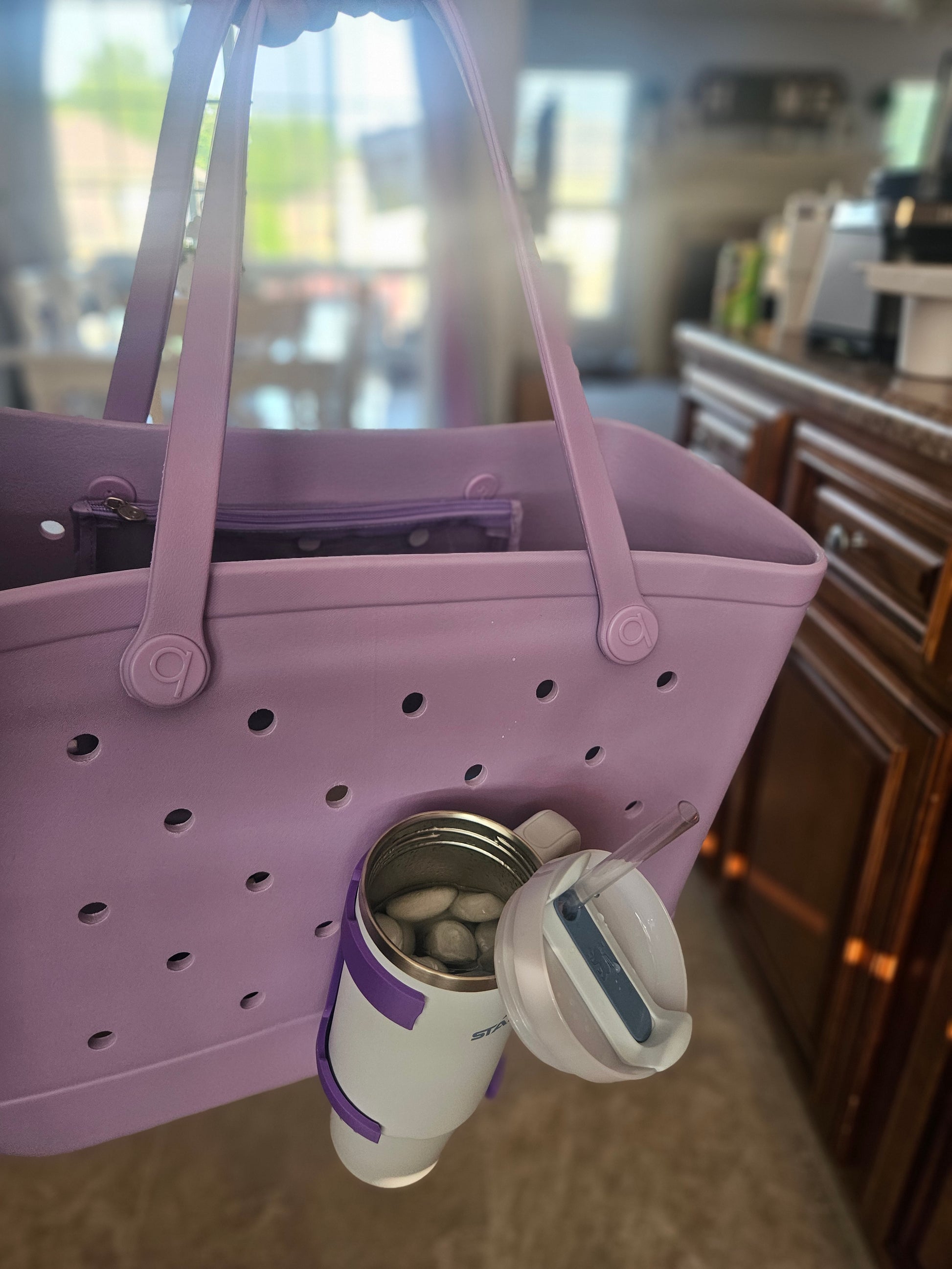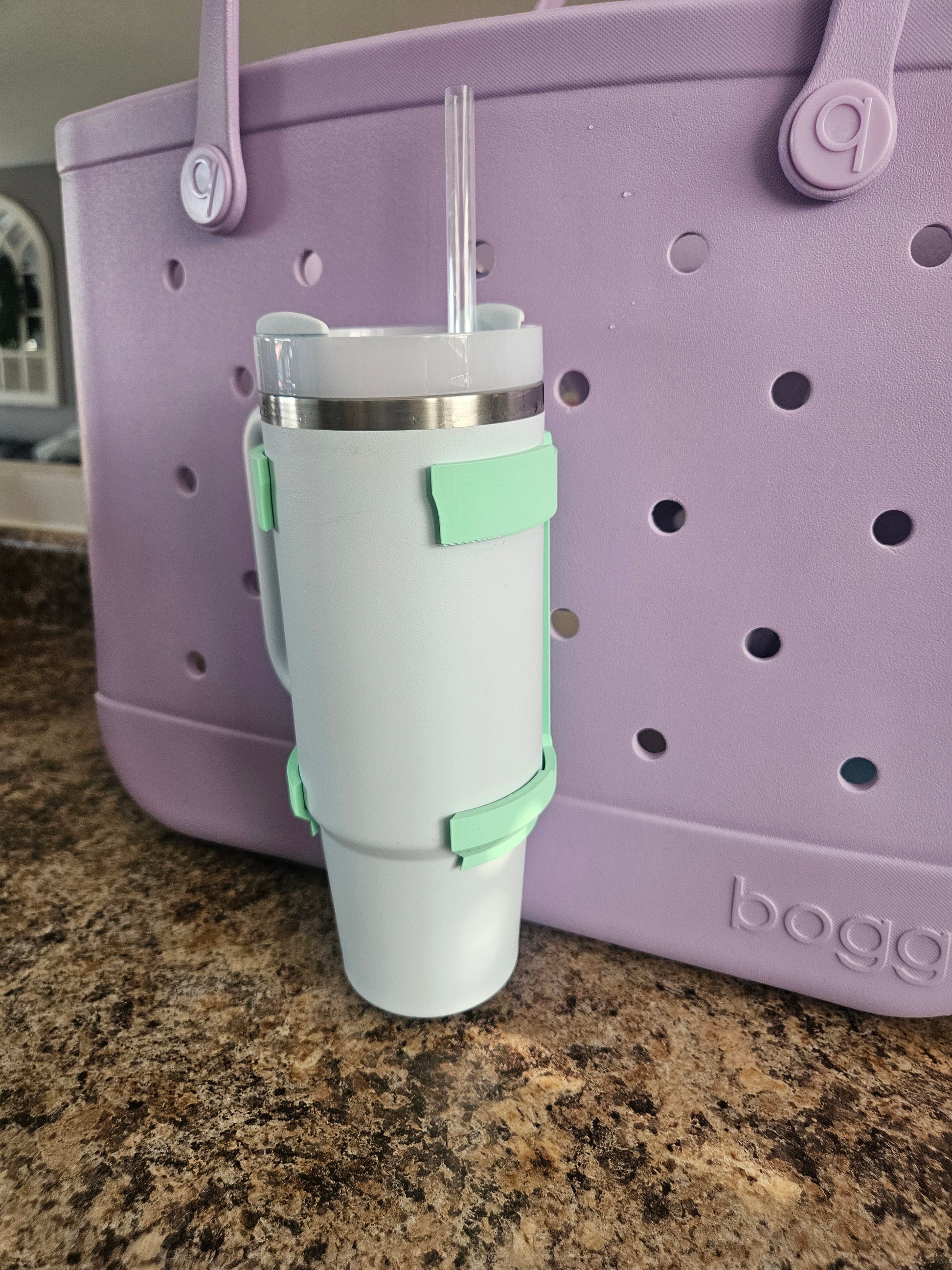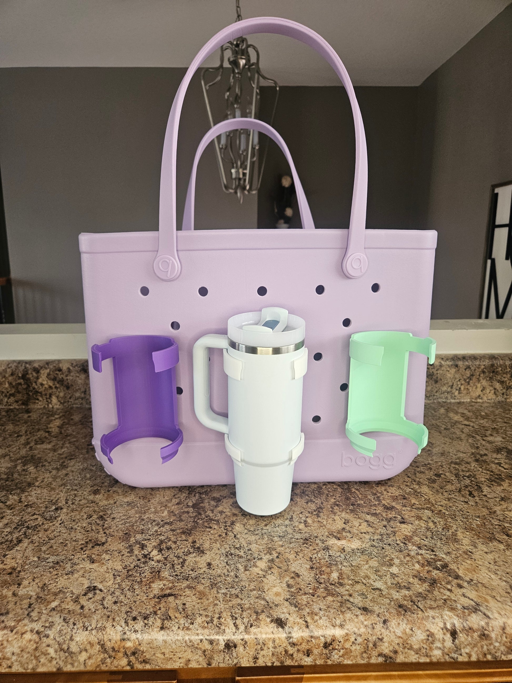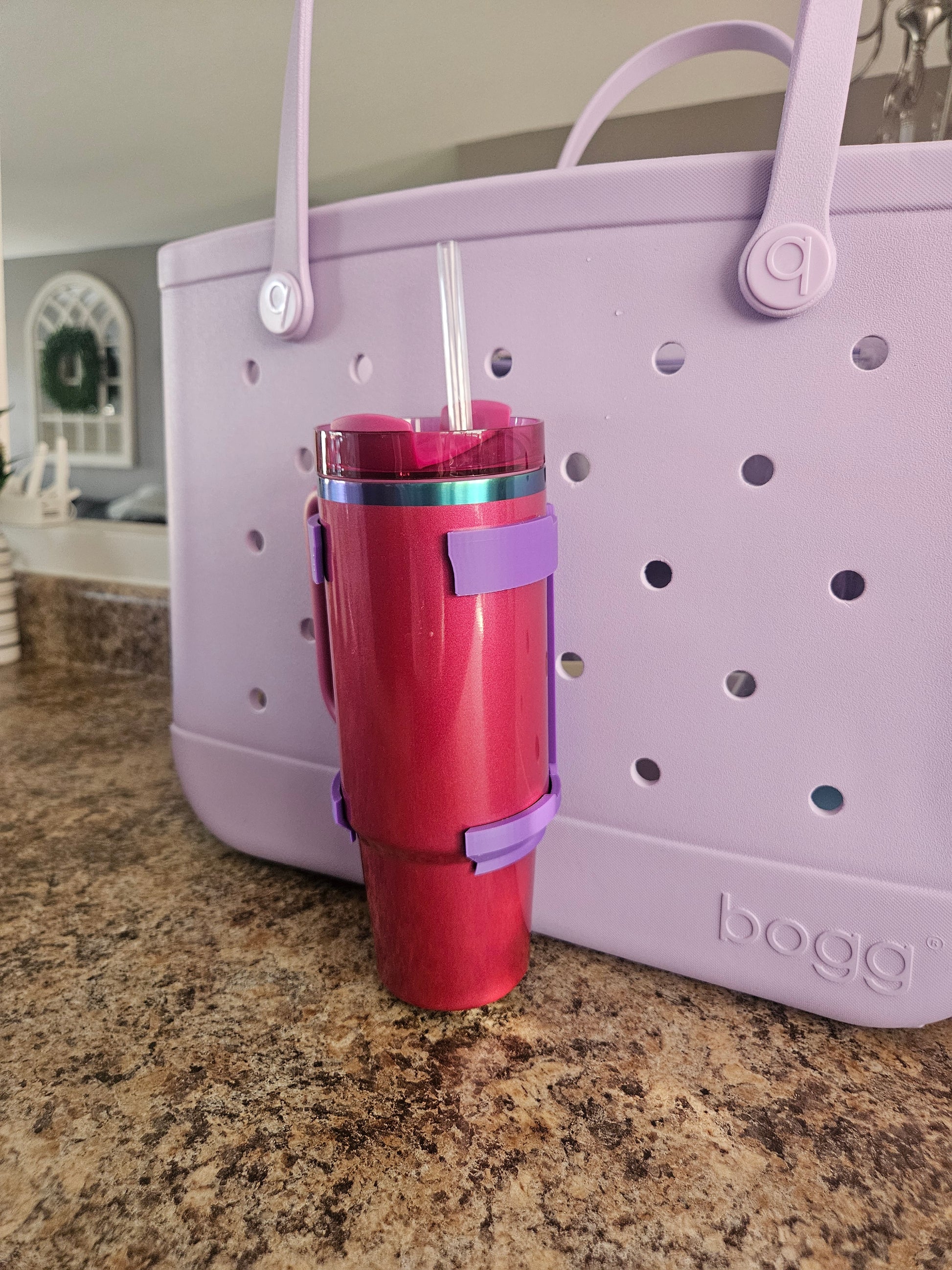 Take your Bogg Bag, Simple Modern Getaway or Simply Southern Large Tote Bag to the next level with a cup holder that fits Stanley Tumblers, Brumat, Owala and many others. The cup holder is made from high quality plastic and is attached to a bag by fitting into a rubber bag hole just like charms. Available in 30 oz for the Bogg original, baby Bogg, Simply Southern Large Tote, Simple Modern Getaway Extra Large, Large and Medium Bags. Does not work with knock off bags as the hole width varies on each brand.